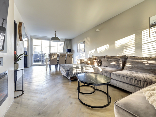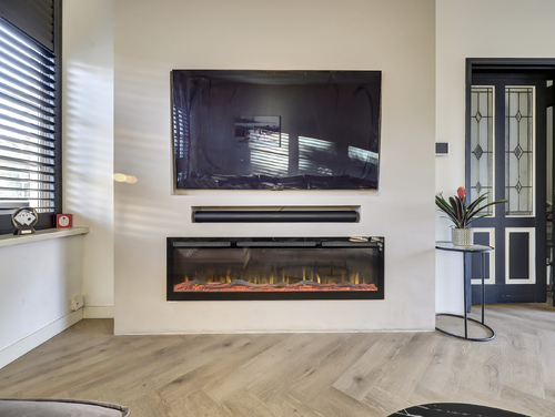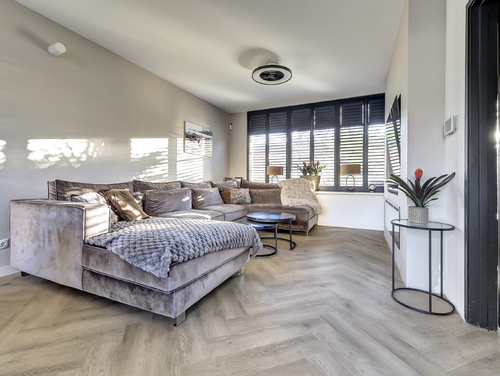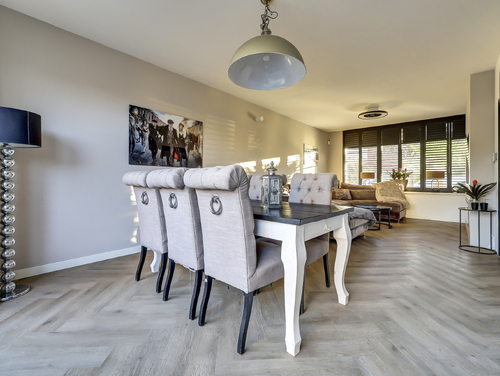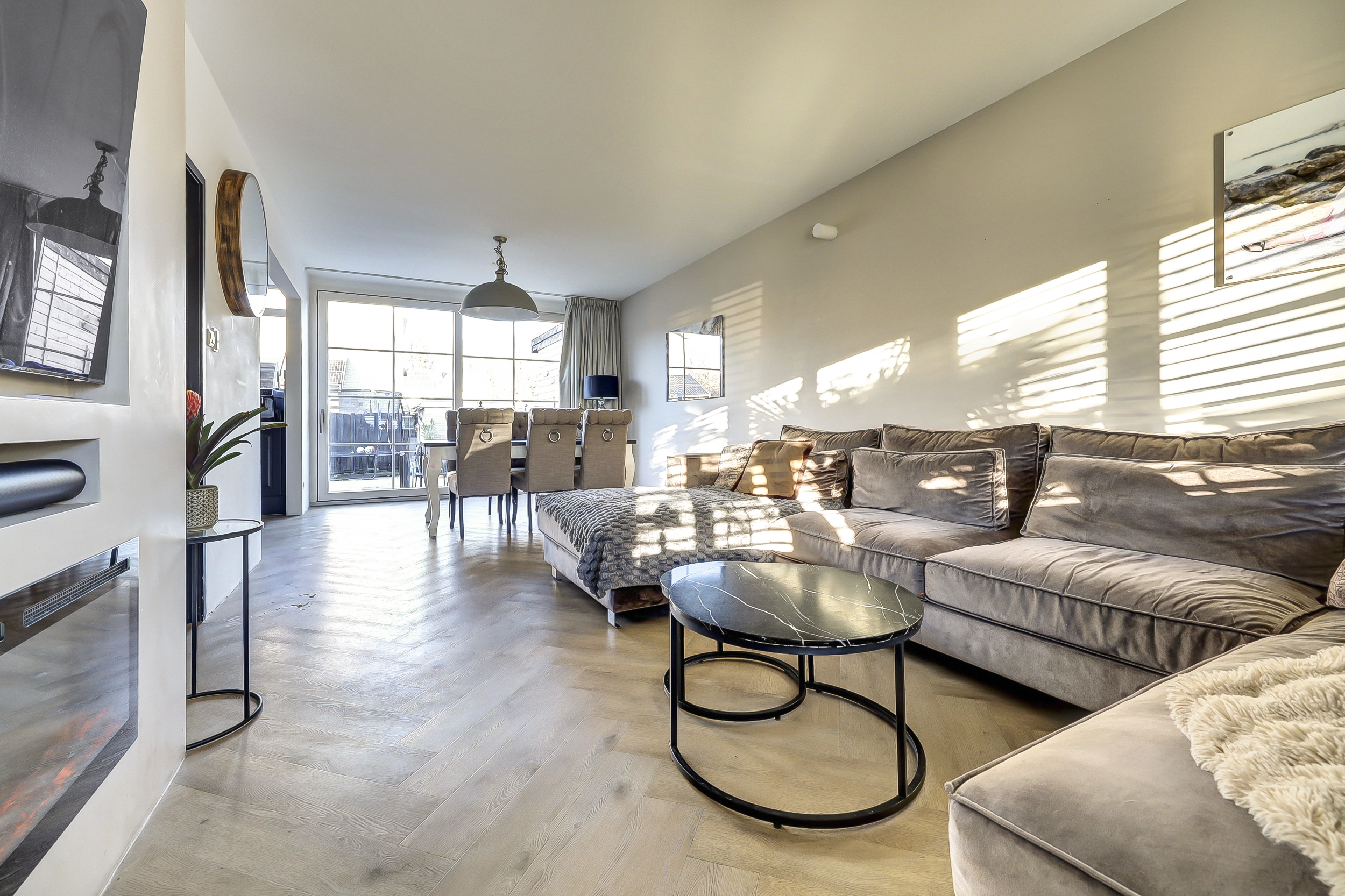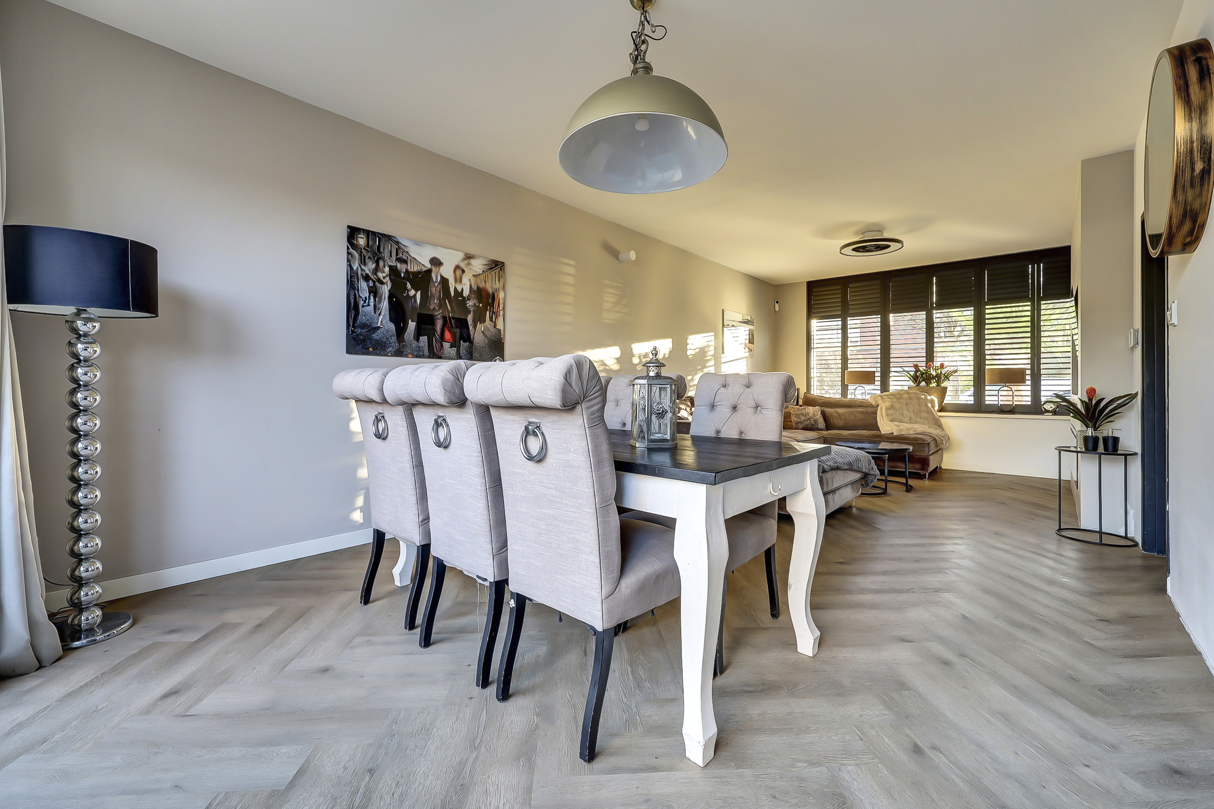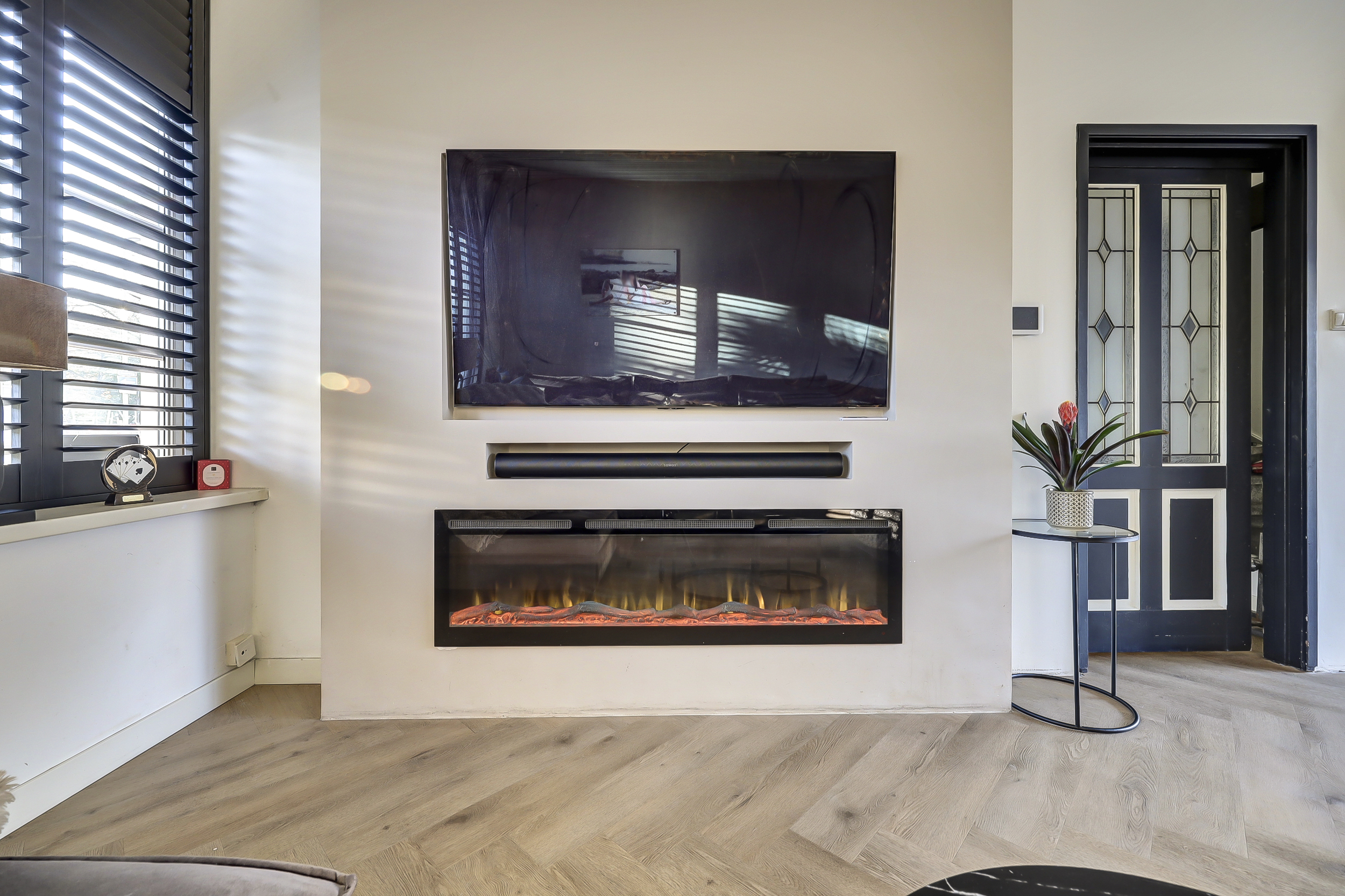 De doorzonwoonkamer van ca. 31 m², is voorzien van een goede lichtinval, een pvc vloer met vloerverwarming (hoofdverwarming), een brede schuifpui, licht gesausde wanden en een super toffe Cinewall met geïntegreerde sierhaard. Vanuit de woonkamer heb je door de shutters, een fraai zicht op de brede straat aan de voorzijde en de diepe tuin aan de achterzijde.