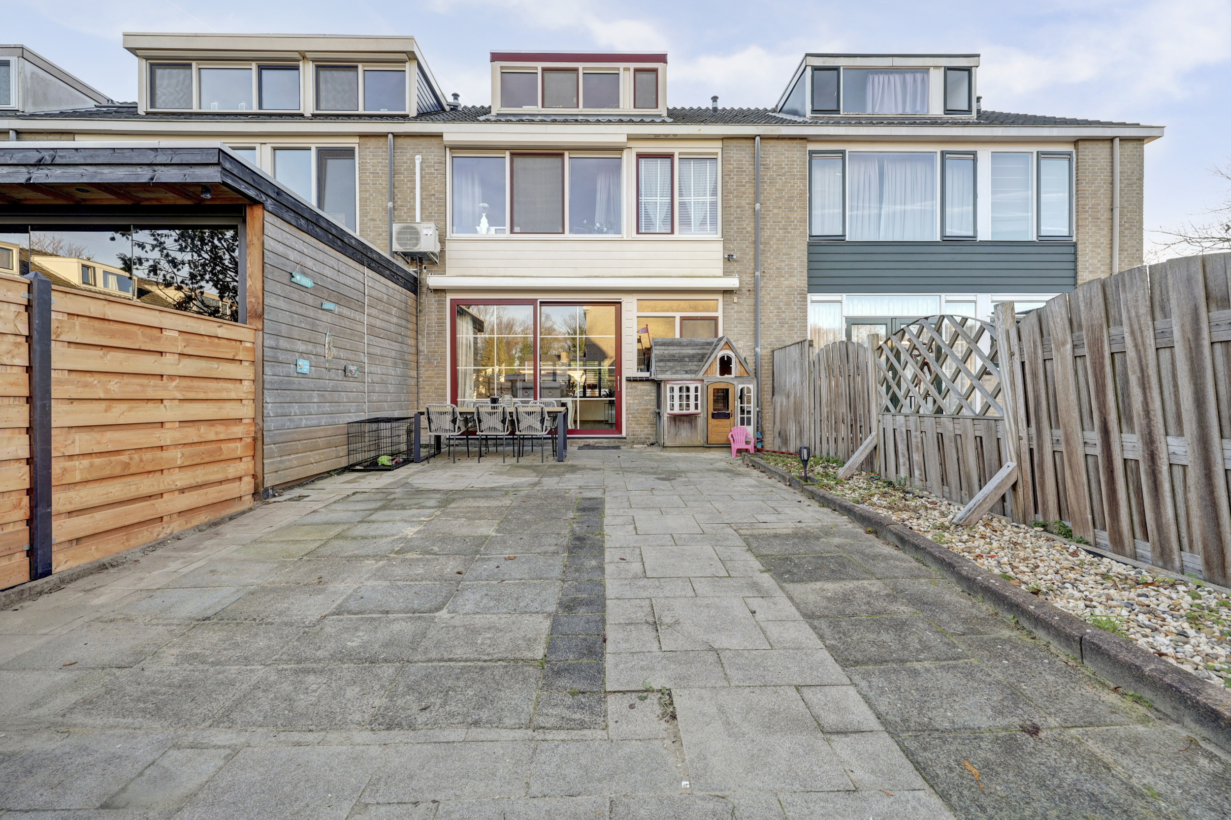De diepe achtertuin (ca. 13 meter, gelegen op het noordoosten) is keurig aangelegd en voorzien van sierbestrating, zonwering, een vrijstaande stenen berging met elektra, een buitenkraan en diverse zitjes zodat je zowel van de zon als van de schaduw kunt genieten. De voortuin is eveneens keurig aangelegd en voorzien van zonwering.