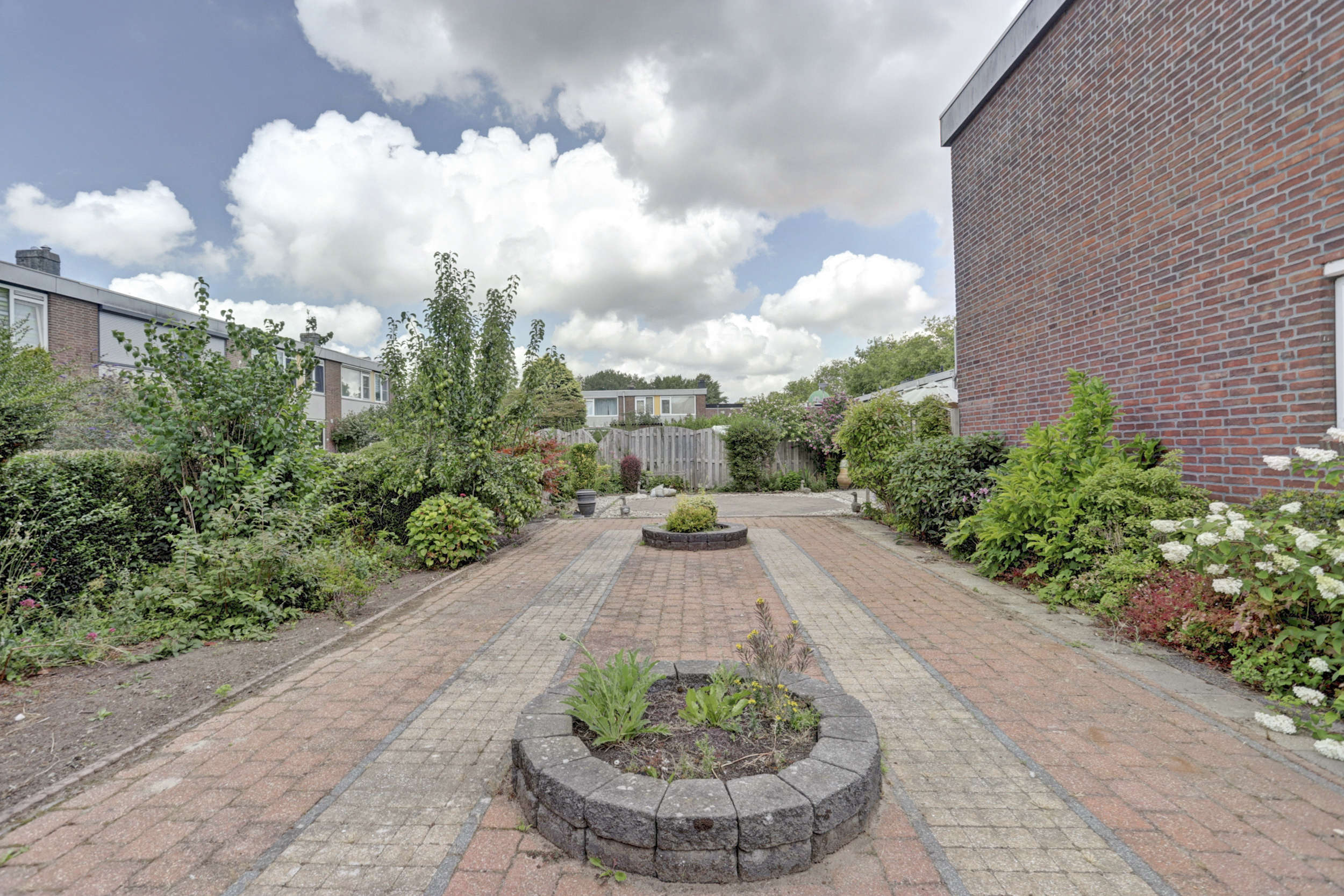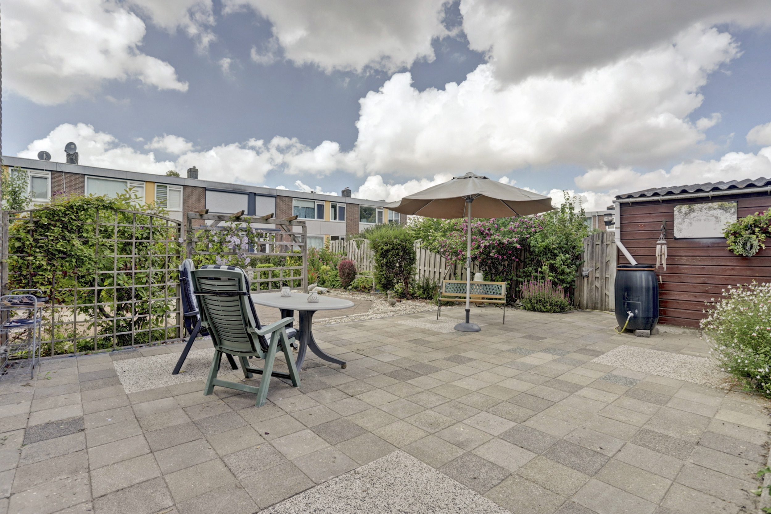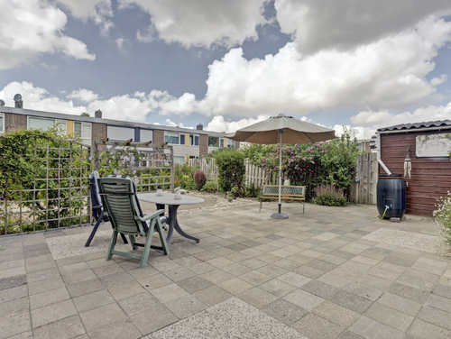 De royale tuin is gelegen op het noord/oosten en voorzien van een vrijstaande houten berging (ca. 7 m²). Verder is de tuin uitgerust met diverse beplanting en een buitenkraan. Parkeren is mogelijk aan de voorkant en zijkant van de woning.