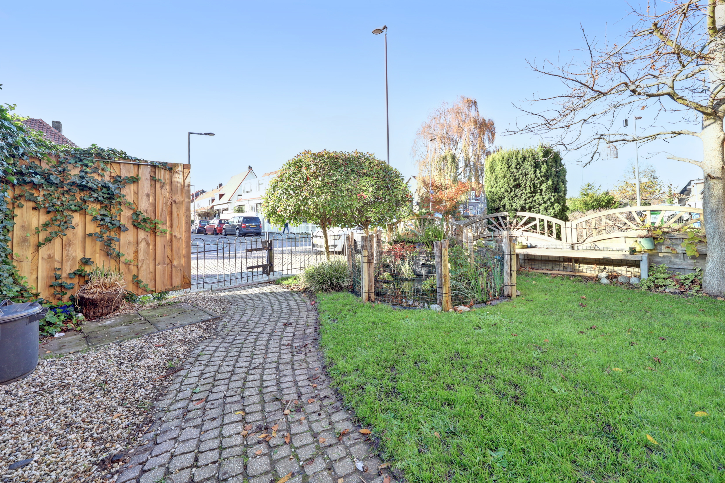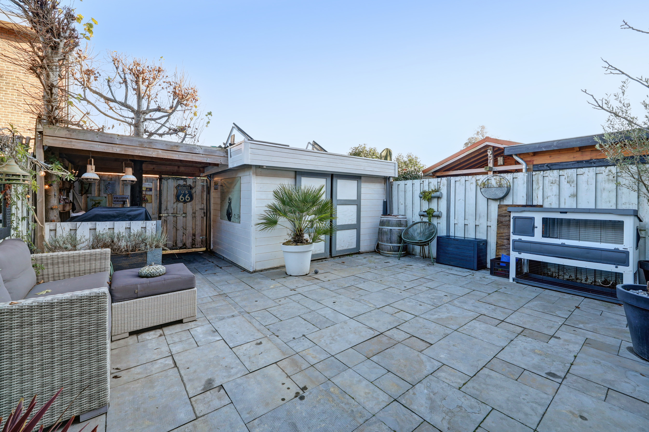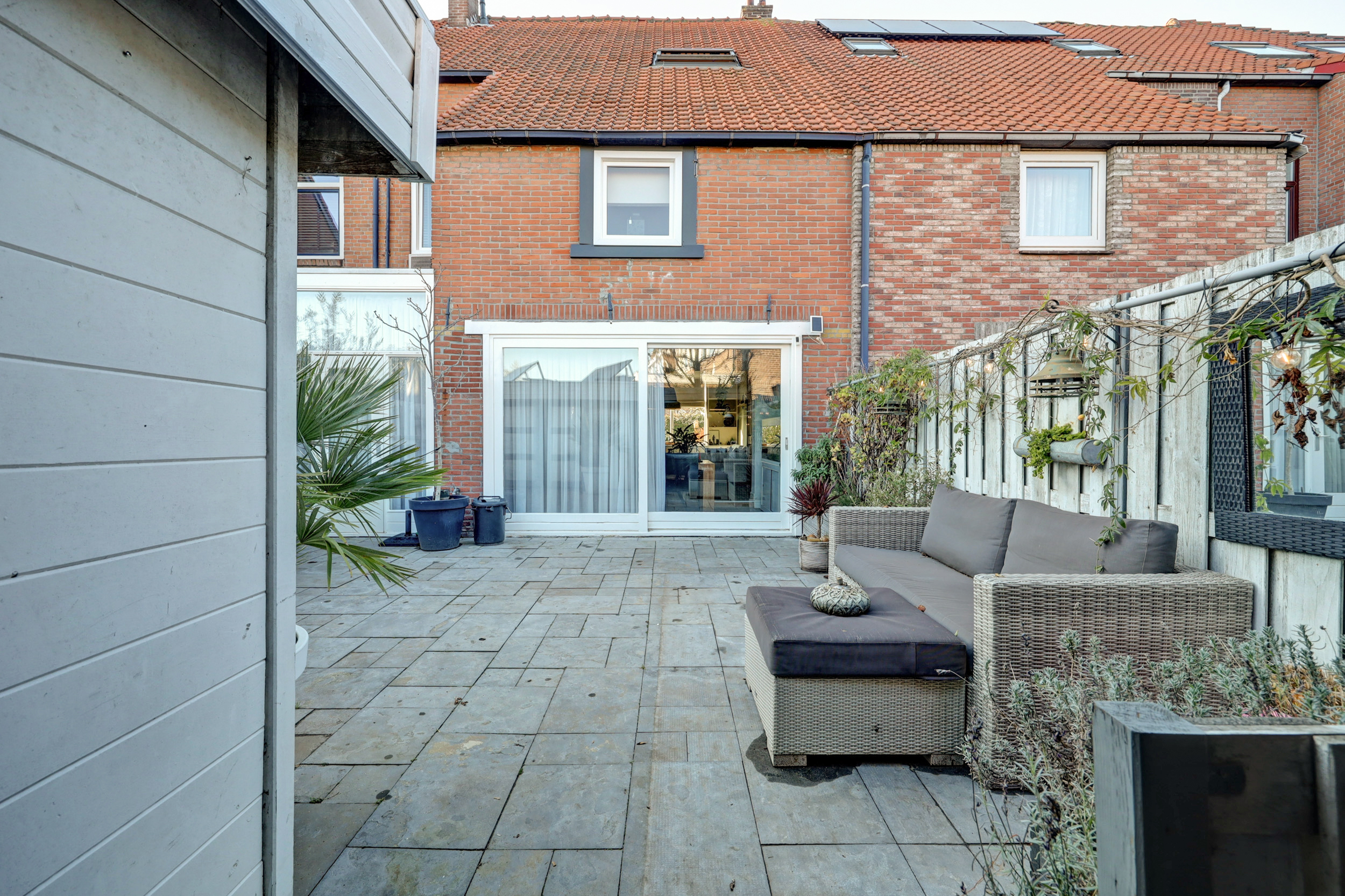 Deze woning beschikt over twee heerlijke, ruime tuinen. De diepe voortuin (ca. 9.50 m x 6.50 m) is sfeervol aangelegd met diverse beplanting, een zonnig terras, een vijver, zonwering en een verzorgd gazon. De achtertuin is praktisch én karaktervol ingericht. Hier vind je een vrijstaande houten berging met overkapping, voorzien van twee zonnepanelen en verlichting. De tuin is fraai afgewerkt met sierbestrating en beplanting, beschikt over een buitenkraan en is tevens achterom bereikbaar. Een fijne, onderhoudsvriendelijke buitenruimte met volop mogelijkheden.
