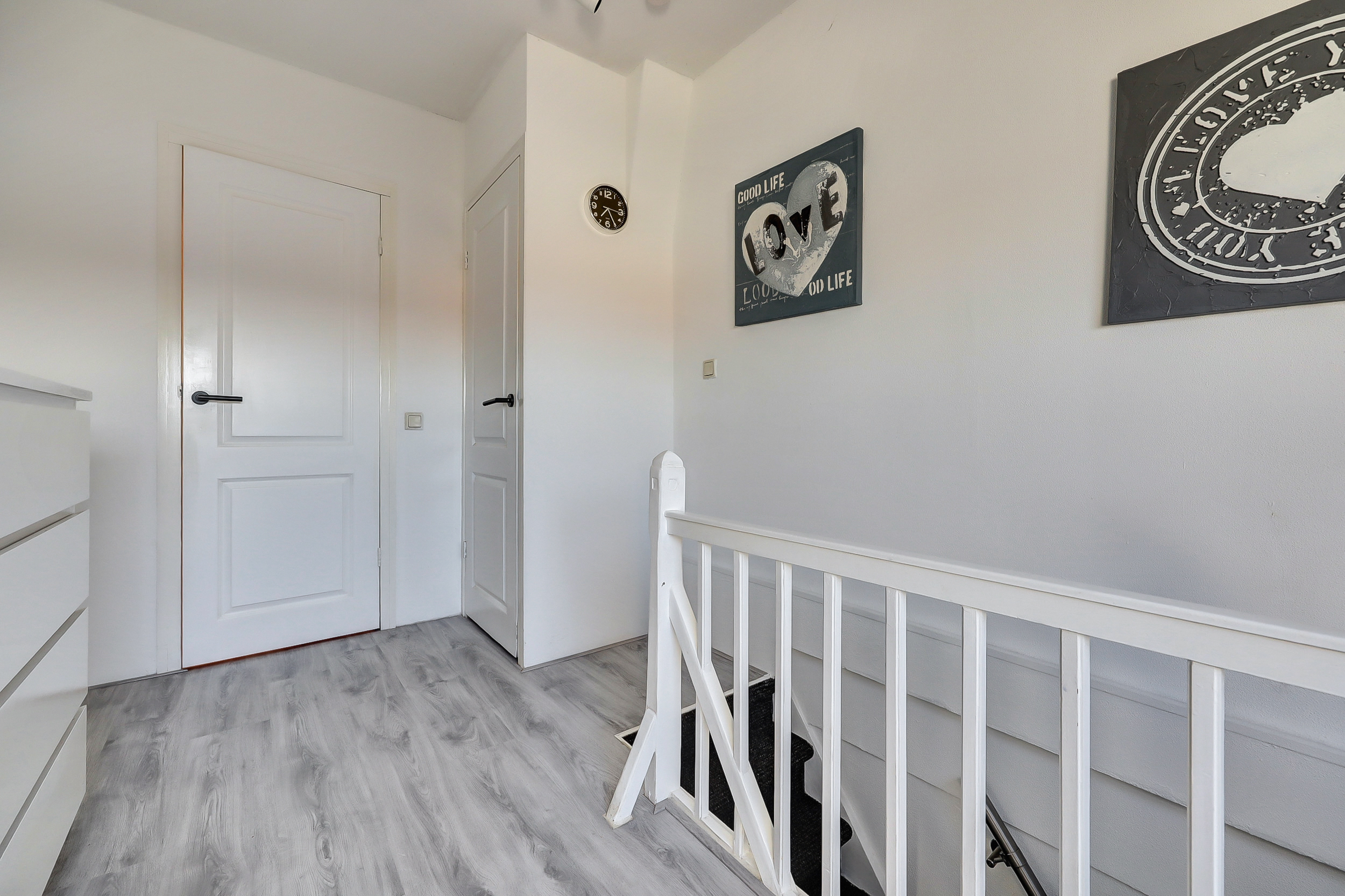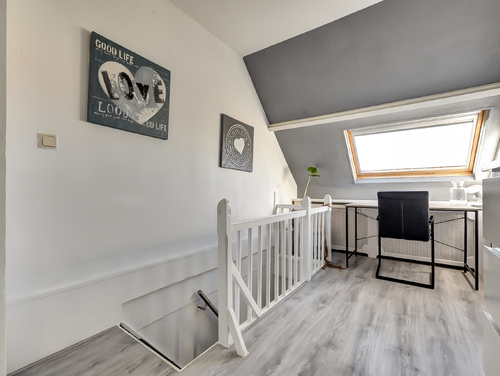 De overloop geeft toegang tot de ouderslaapkamer, een achterkamer, de badkamer en het separate toilet. Een overzichtelijke en comfortabele verdieping waar alle ruimtes praktisch zijn ingedeeld en optimaal bereikbaar zijn.