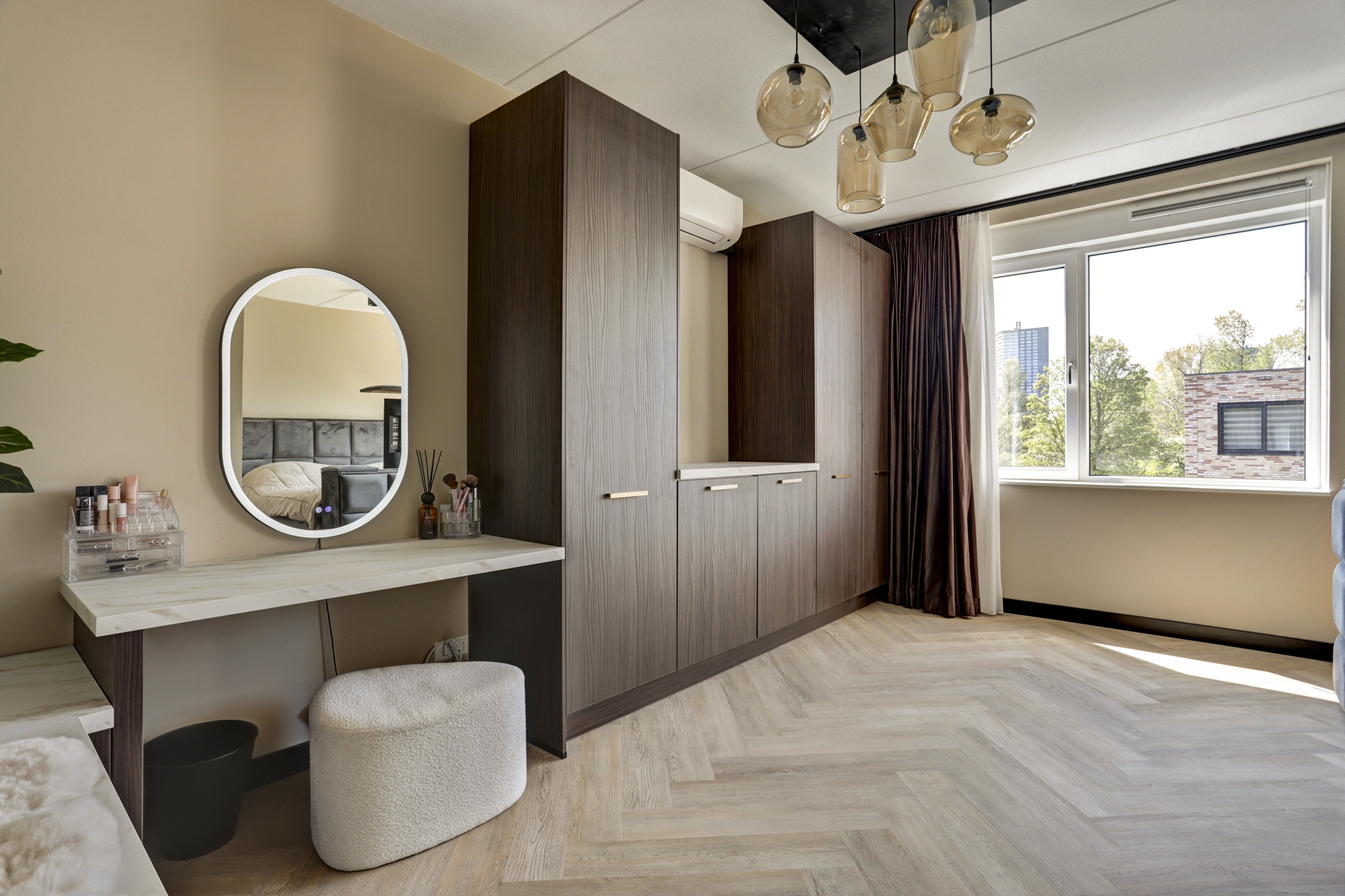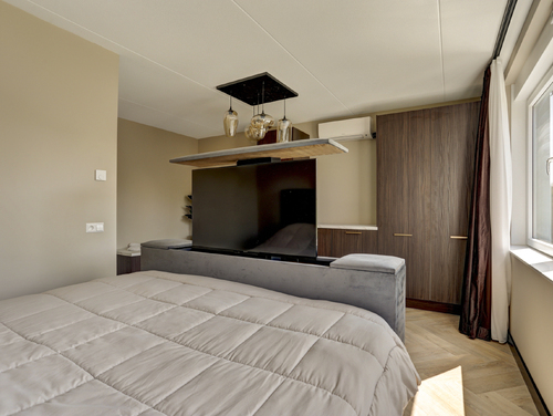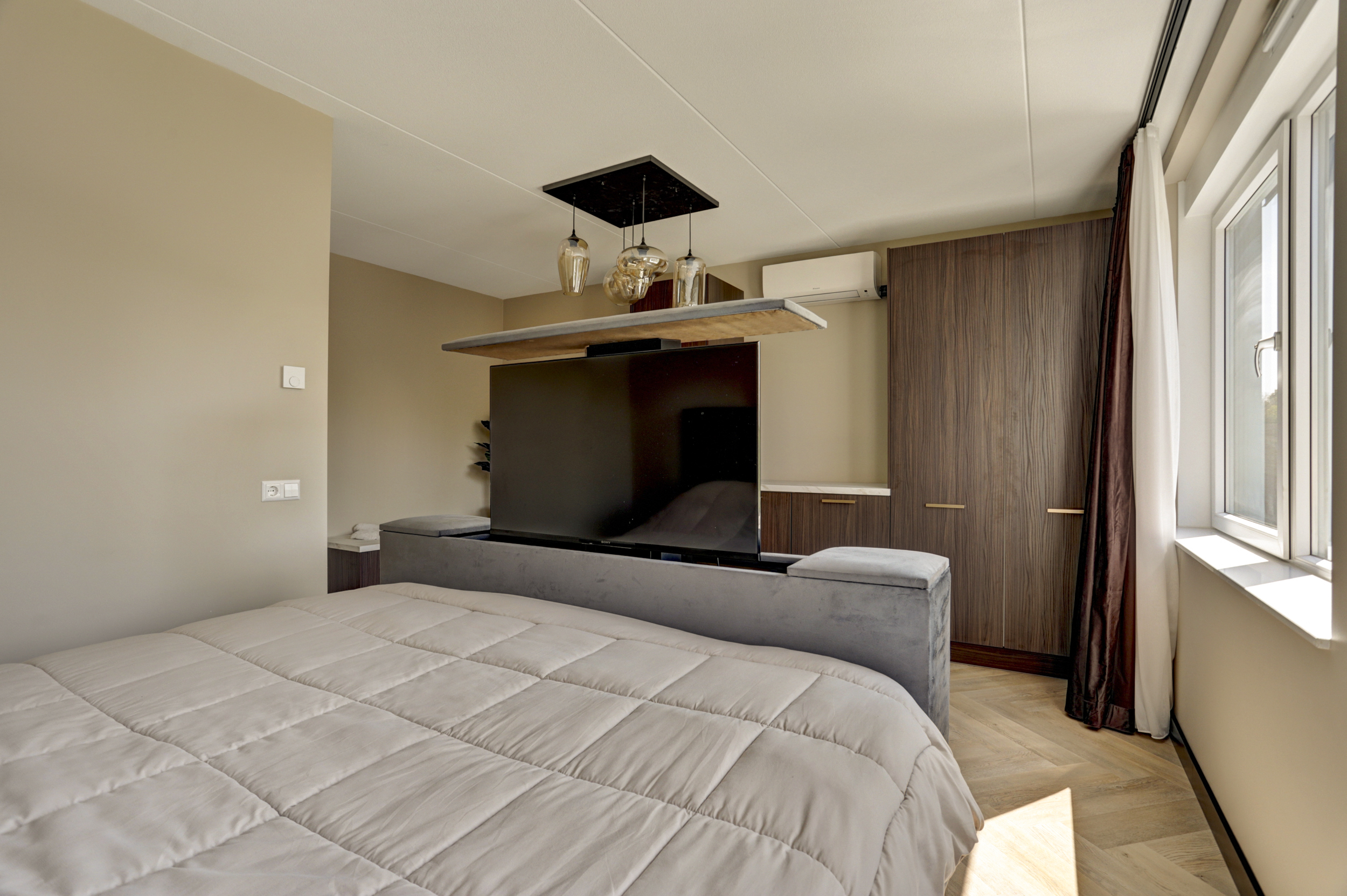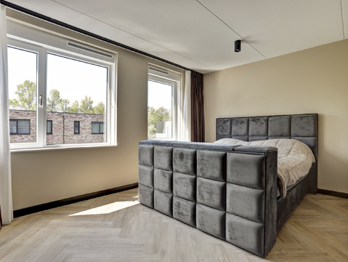 De royale ouderslaapkamer (ca. 20 m²) is gelegen aan de achterzijde van de woning en voorzien van airconditioning.