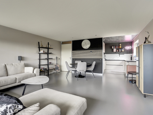 Alle vertrekken zijn voorzien van een gietvloer en licht gesausde wanden.