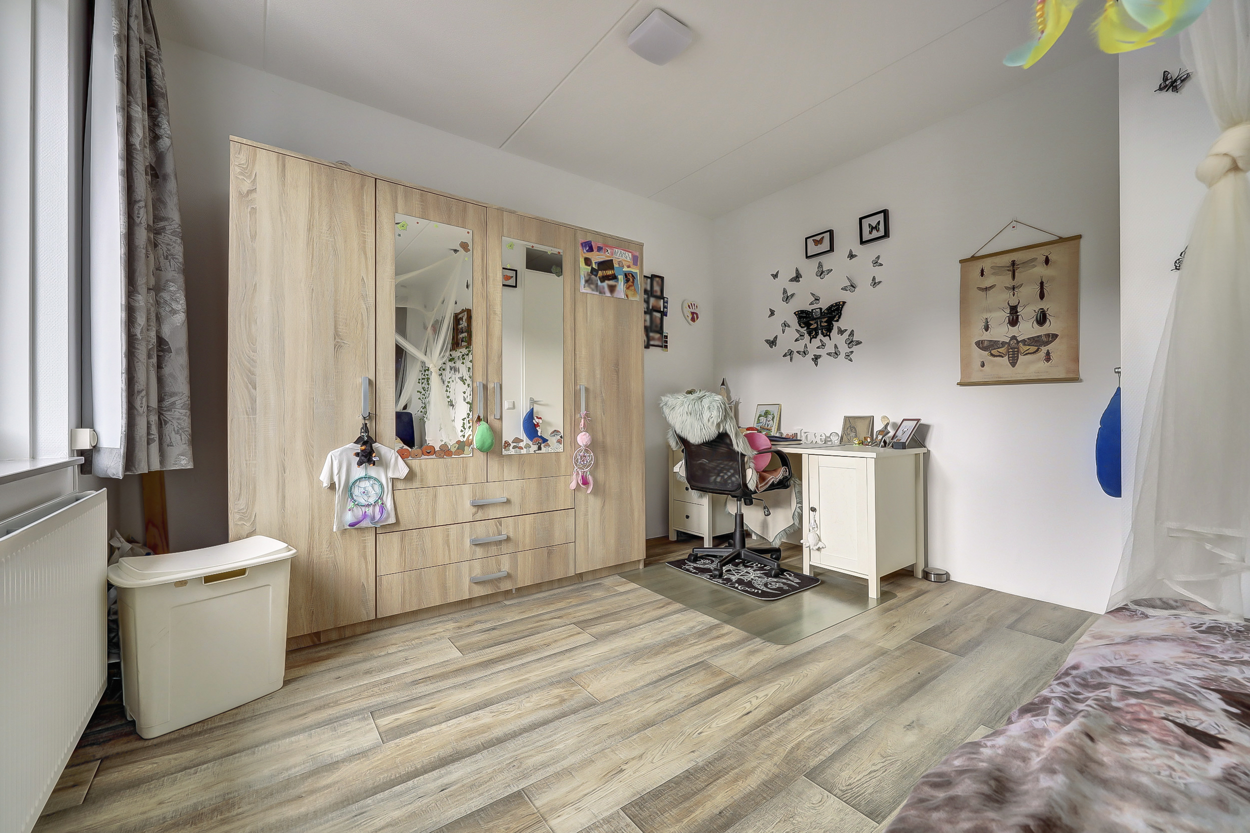 Deze kamer (ca. 17 m², 2 kamers mogelijk) bevindt zich aan de voorzijde van de woning en is eveneens voorzien van glasvezelwandafwerking en rolluiken.