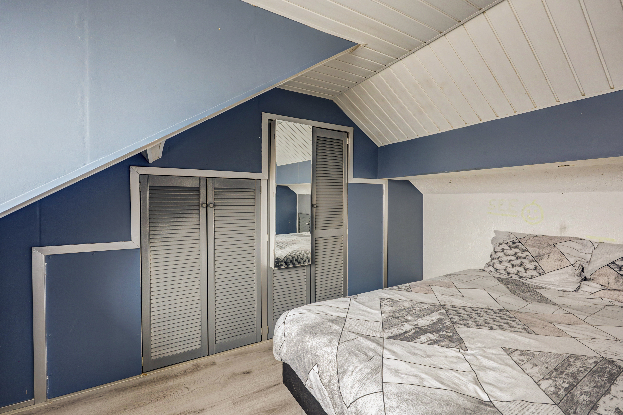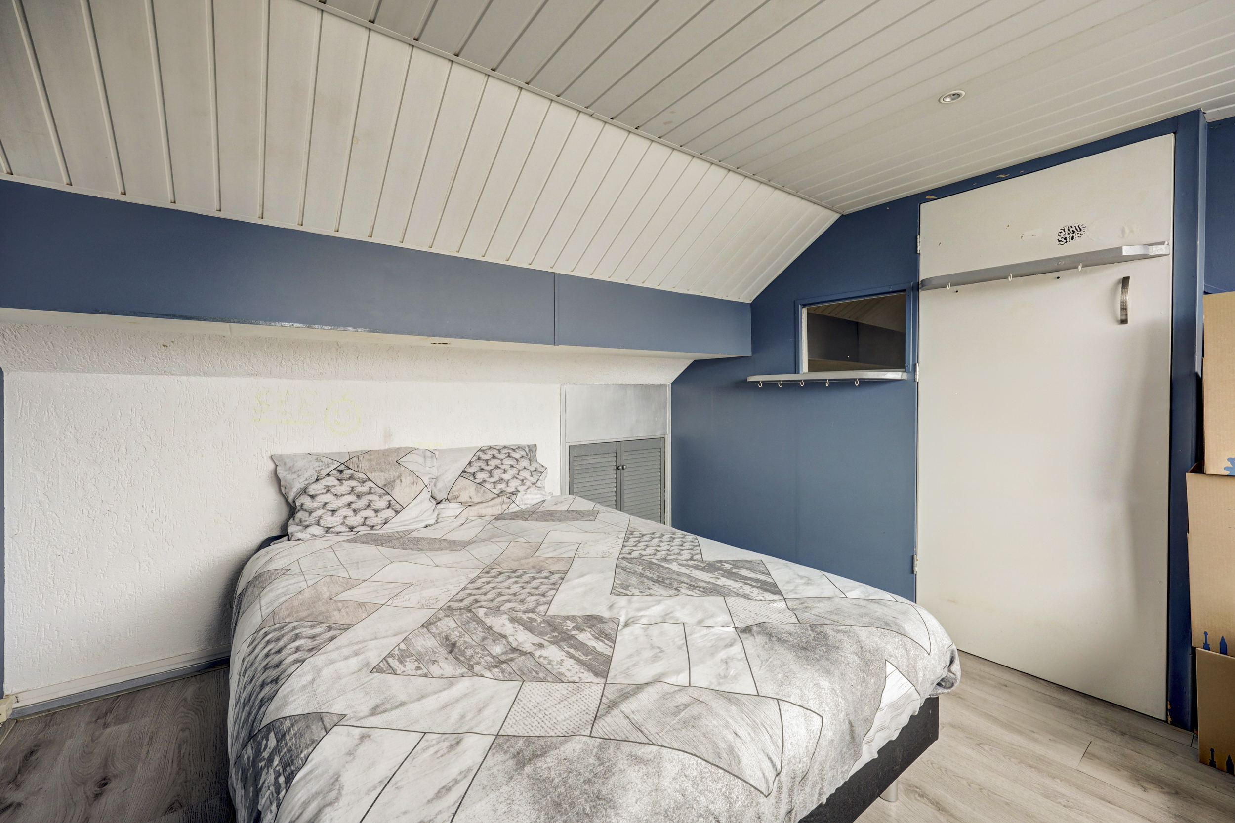 Hier tref je de 4e slaapkamer en de opstelling van de cv combiketel (Vaillant, bouwjaar 2014). Tevens beschikt de slaapkamer over een dakkapel en meerdere opbergmogelijkheden achter het knieschot en in vaste kasten.