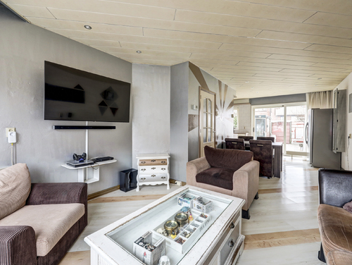De doorzonwoonkamer (ca. 25 m²) is voorzien van een laminaatvloer, een gunstige lichtinval en een brede schuifpui. De grote ramen geven je een fraai zicht op zowel de voor- als achtertuin.
