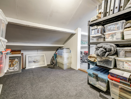 Via een spiltrap vanaf de overloop bereik je de zolderverdieping (ca. 12 m²).