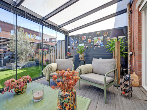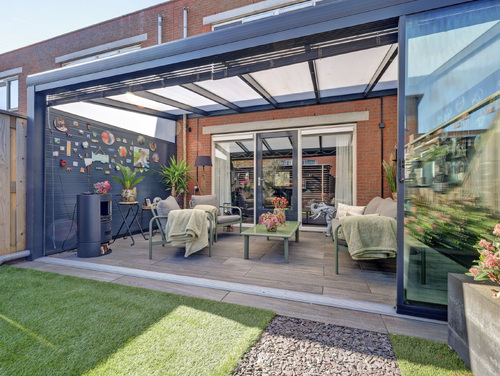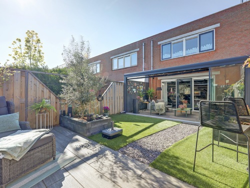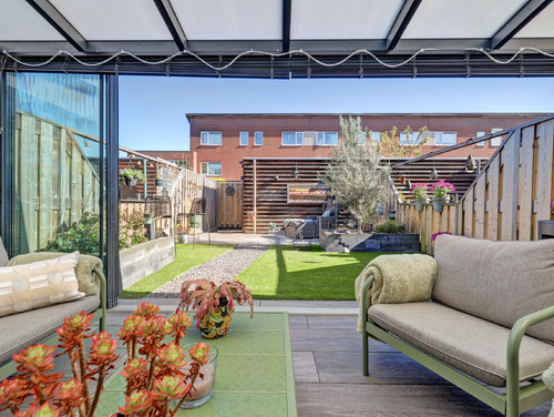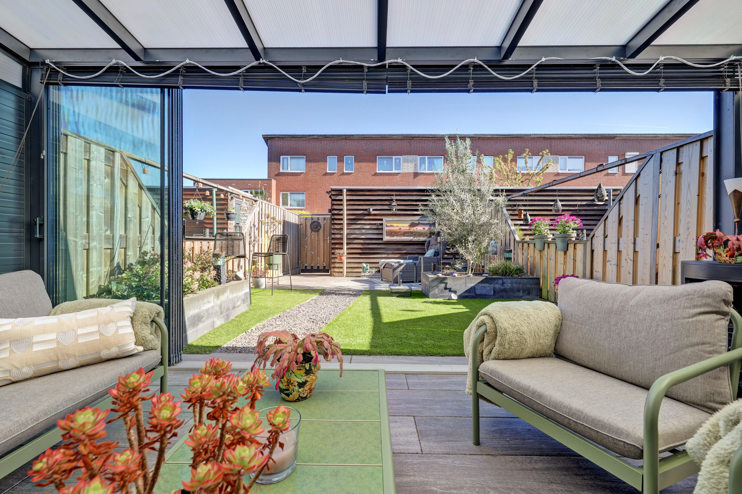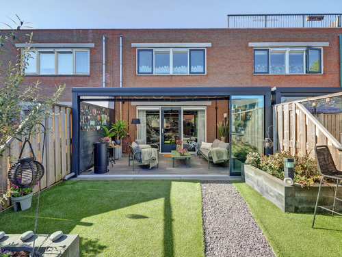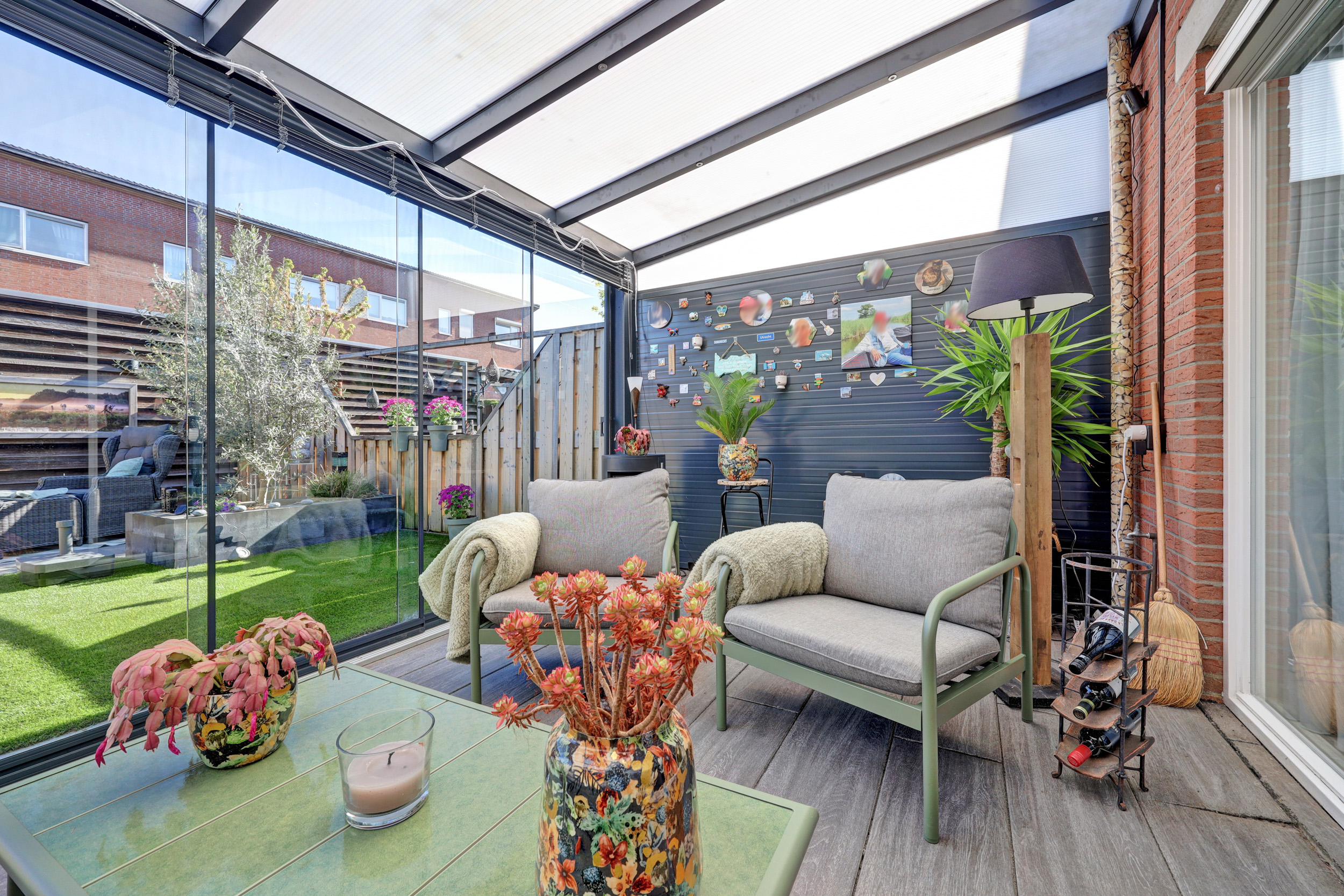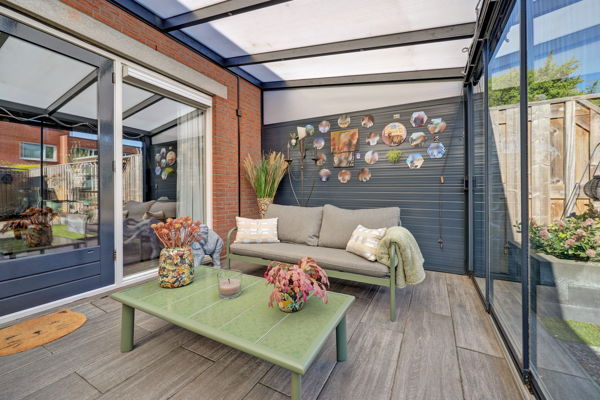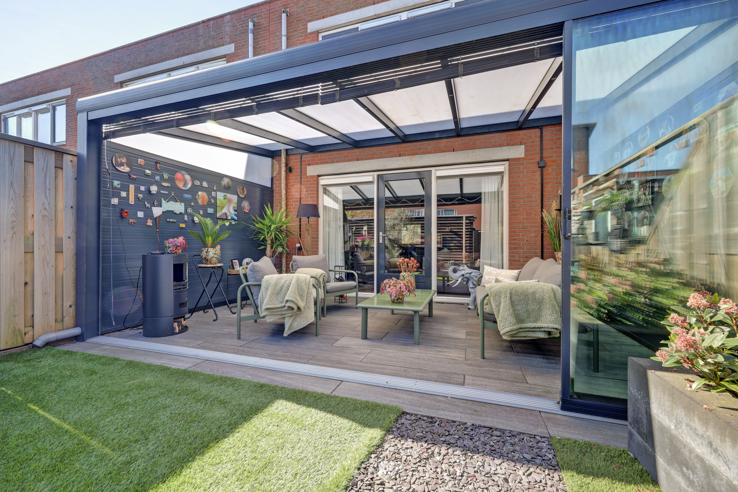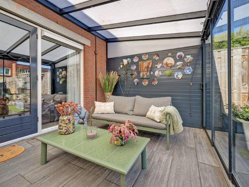 De aangebouwde (onderheide) serre is in 2022 geplaatst en voorzien van verlichting, meerdere glazen schuiframen, een tegenvloer die doorloopt in de tuin, een buitenkraan en elektra.