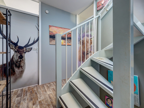 De overloop met laminaatvloer, geeft toegang tot de 2 riante slaapkamers en de badkamer.