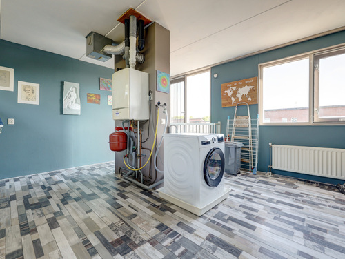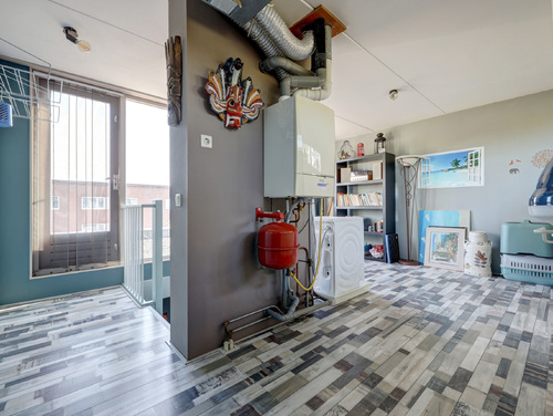 Op deze royale verdieping (ca. 25 m²) met laminaatvloer bevinden zich de opstelling voor de wasmachine, de cv-combiketel (Remeha Calenta, bouwjaar 2012) en meerdere vaste kasten. Daarnaast heb je vanaf hier toegang tot het platte dak/dakterras. Indien gewenst bestaat er bovendien de mogelijkheid om op deze verdieping een extra slaapkamer te realiseren.