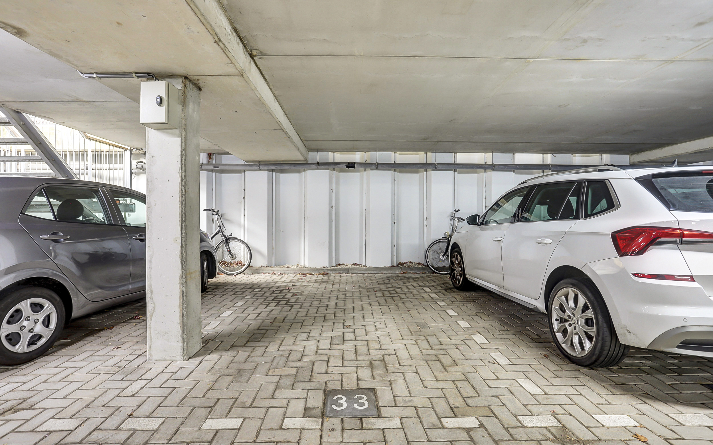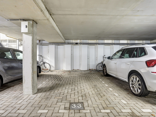 In de parkeerkelder bevindt zich een bij de woning horende parkeerplaats (nr. 33) en een eigen separate berging (ca. 4 m²).