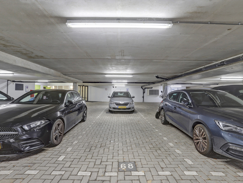 In de parkeerkelder ligt de bij de woning horende parkeerplaats (nr. 68) en de eigen berging (ca. 6 m²).