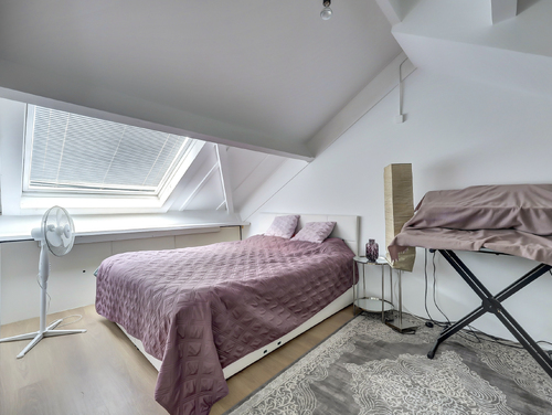 De 4e slaapkamer met dakkapel en "Velux" dakraam is ruim 15 m² en is voorzien van opbergmogelijkheden achter de knieschotten.