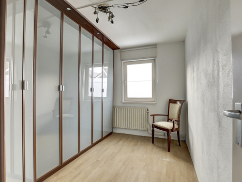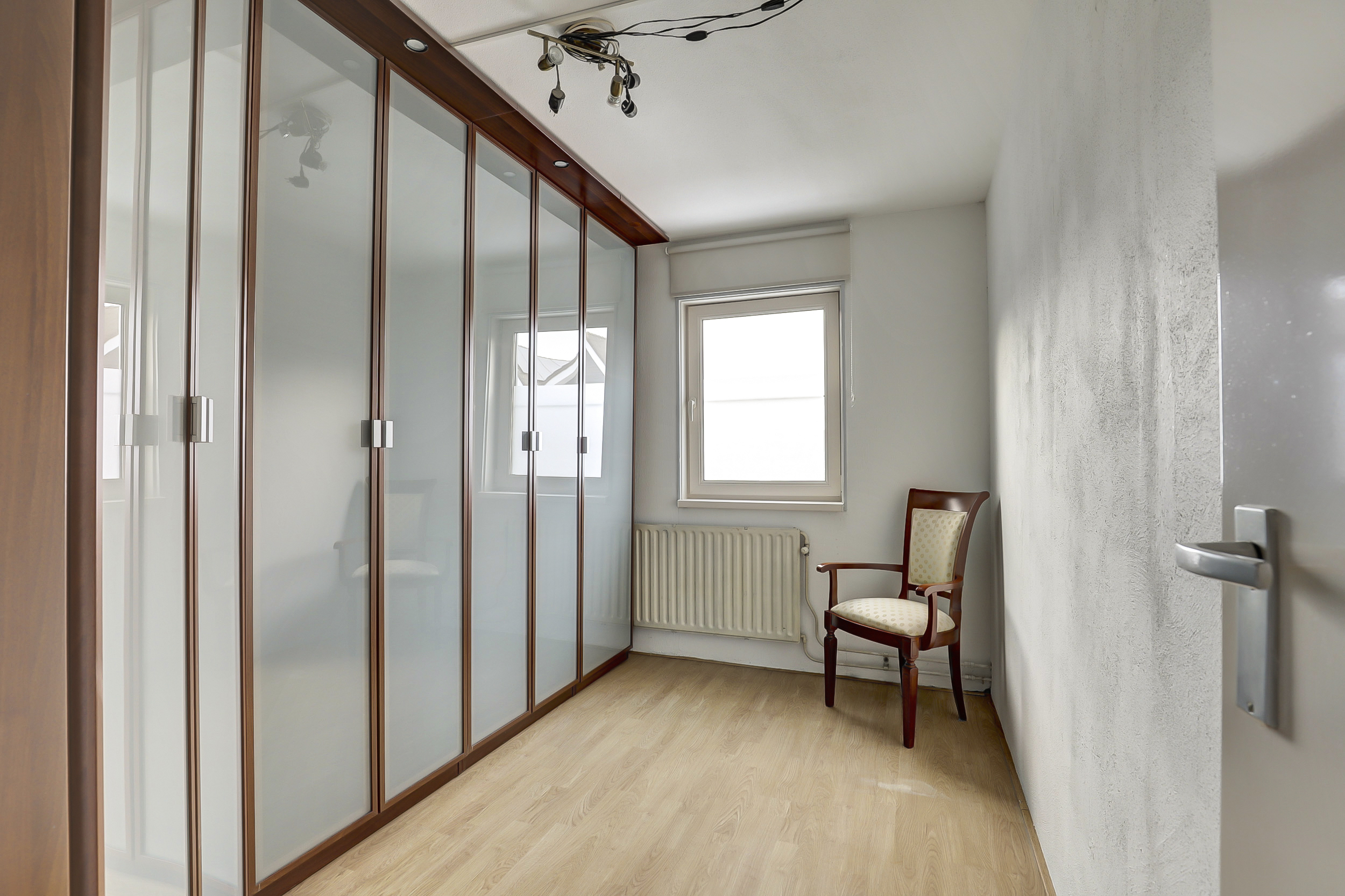 Dit vertrek (ca. 9 m²) eveneens met laminaatvloer, is gelegen aan de achterzijde van de woning en uitgerust met een grote kastenwand.