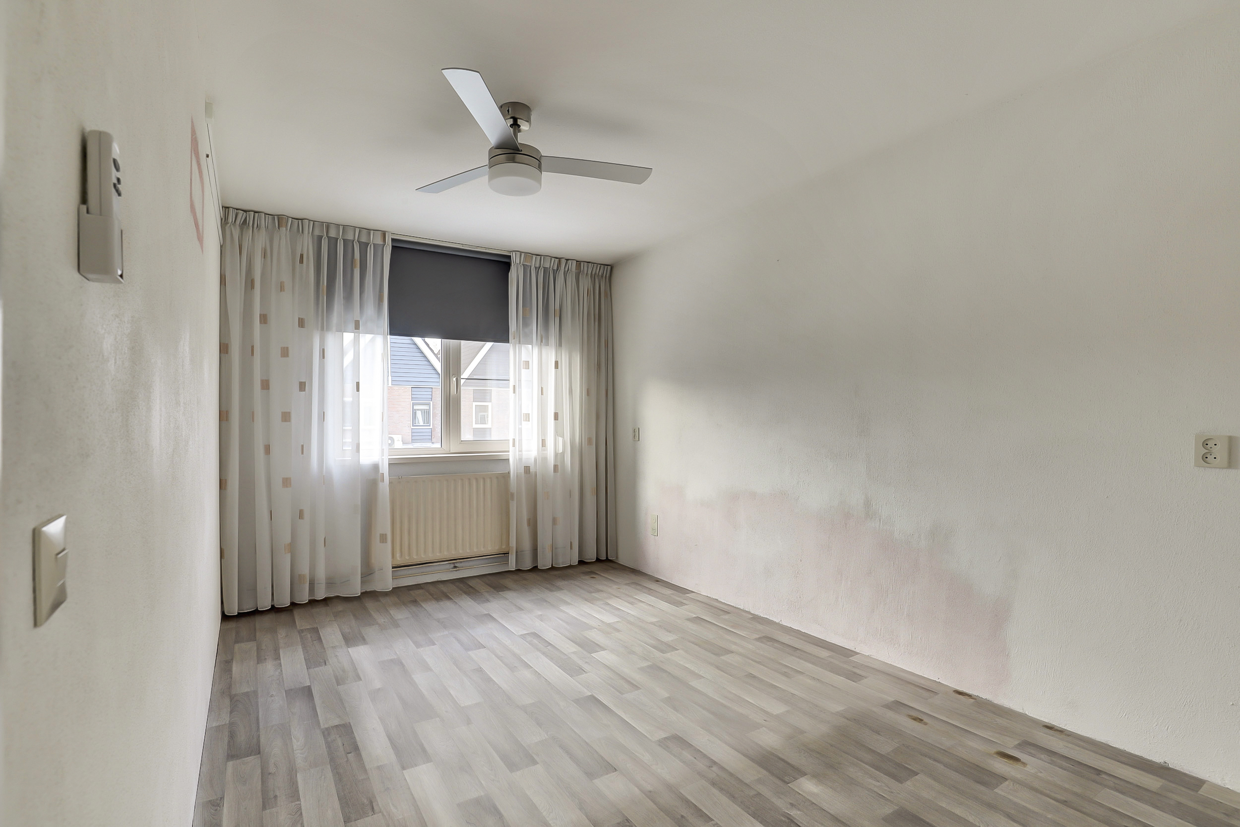 De ouderslaapkamer (ca. 12 m²) is gesitueerd aan de achterzijde van de woning en voorzien van een vinyl vloer en een rolluik.