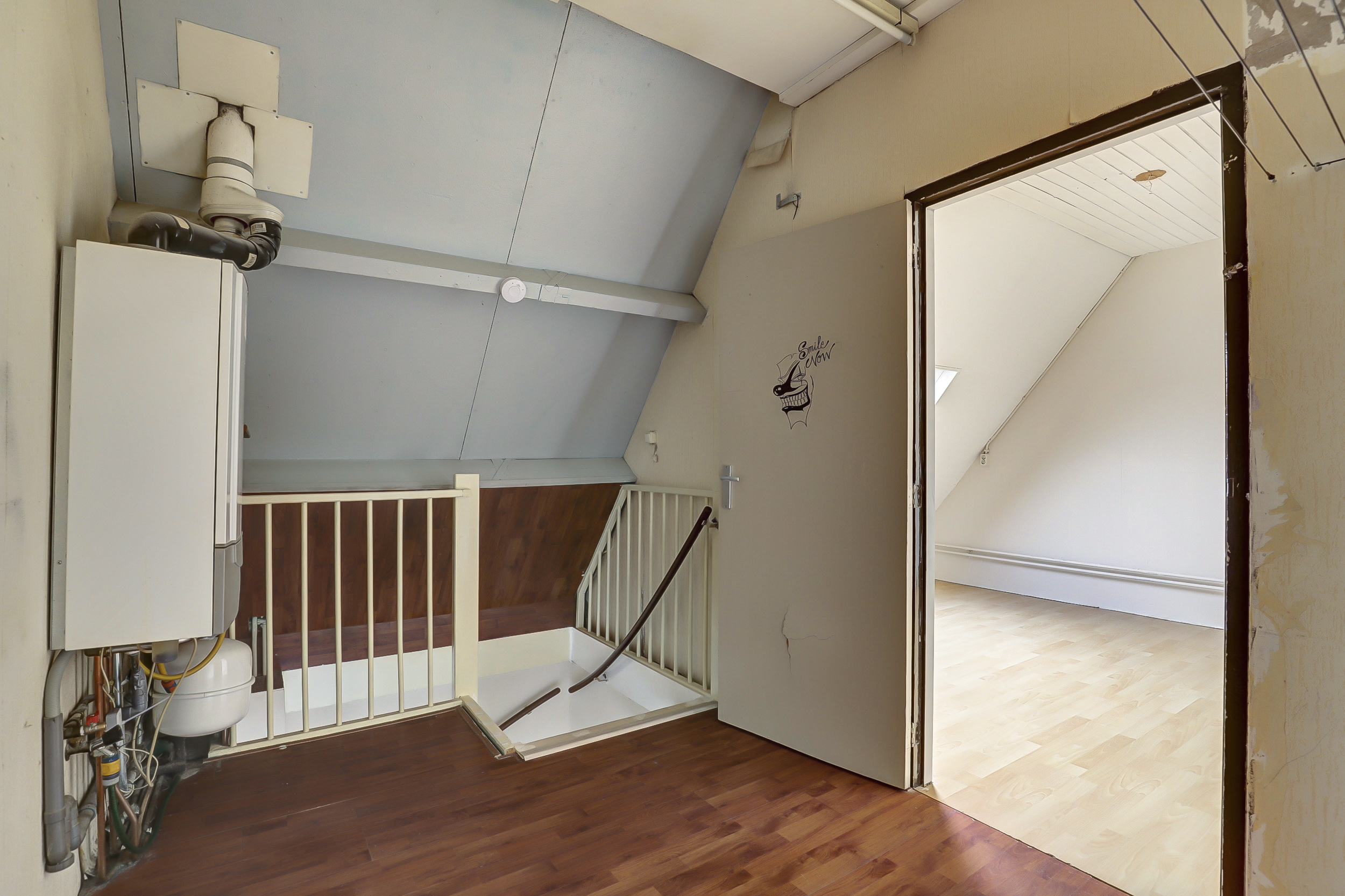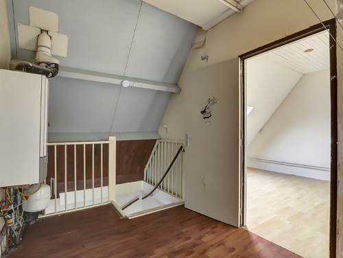 Via een vaste trap bereik je de overloop waar zich de opstelling van de wasmachine en de cv combiketel (Remeha, bouwjaar 2005) bevindt. Daarnaast tref je hier nog eens 2 slaapkamers.