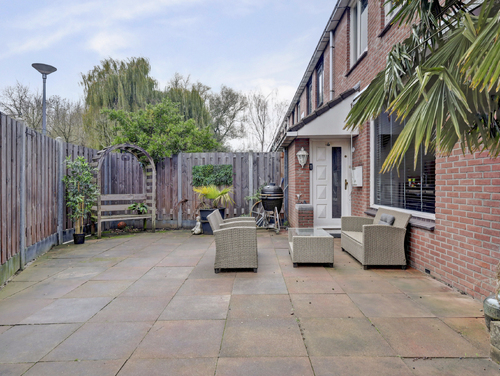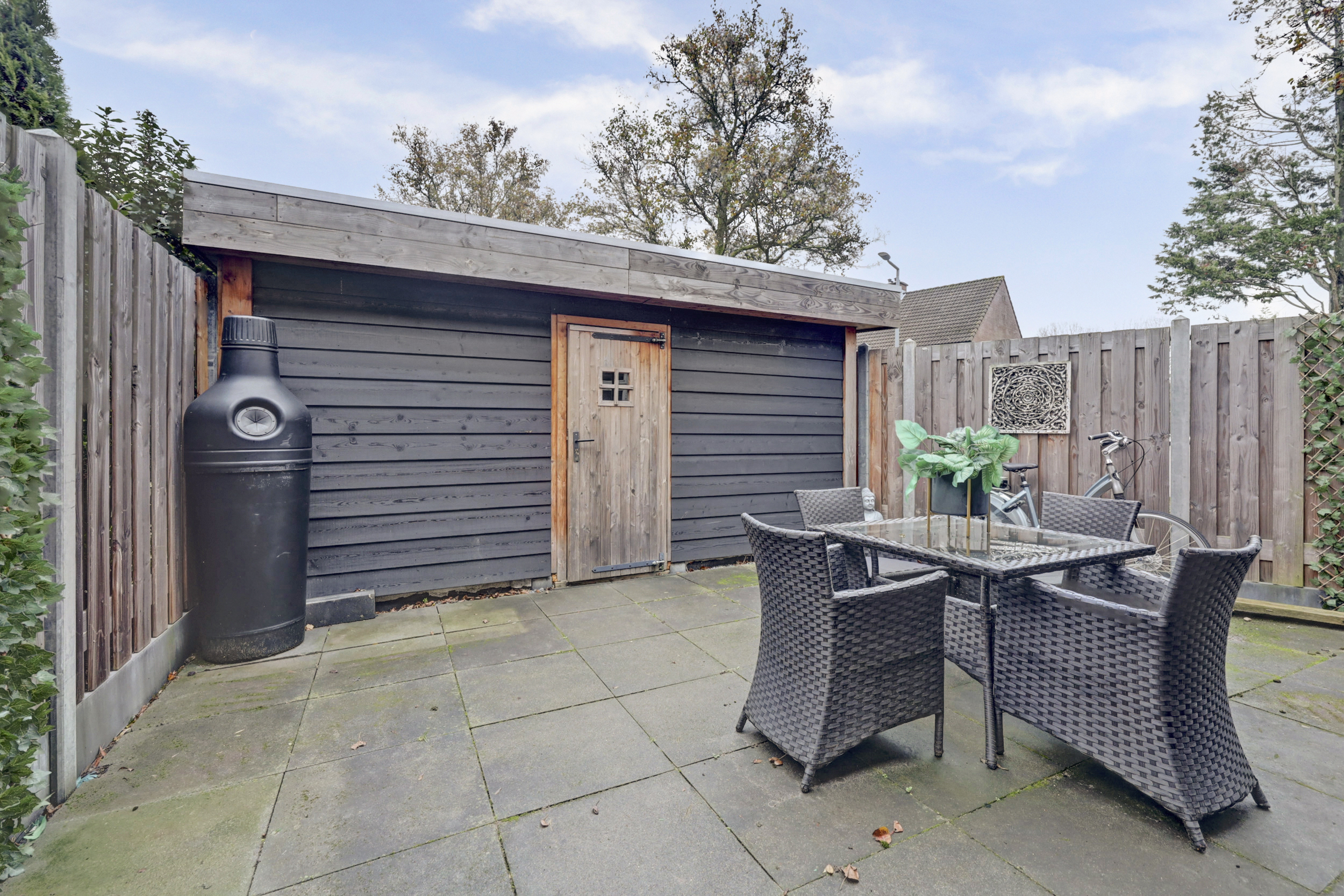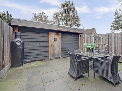 De voor-, zij- en achtertuin zijn geheel omheind en bieden veel privacy. Daarnaast is de tuin geheel voorzien van betegeling en een in 2021 geplaatste vrijstaande (geïsoleerde) mancave van circa 13 m². Naast de woning tref je een aangebouwde stenen berging (ca. 7 m²) met elektra en een kleine zolderberging.