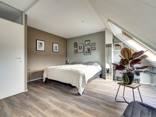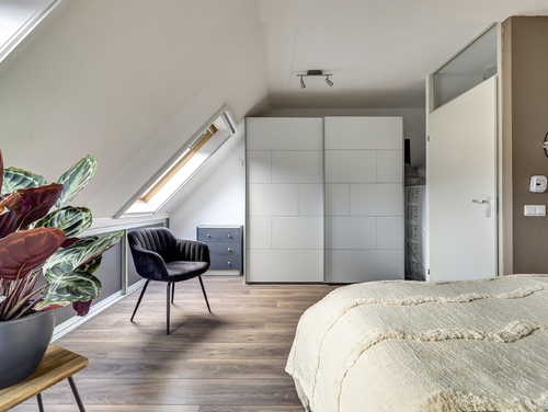 De ouderslaapkamer (ca. 20 m², voorheen 2 kamers) is gelegen een de achterzijde van de woning en voorzien van twee dakramen, een laminaatvloer en diverse opbergmogelijkheden achter de knieschotten.