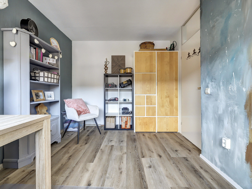 Deze kamer met pvc vloer, bevindt zich aan de voorzijde van de woning en is ca. 11 m² groot.