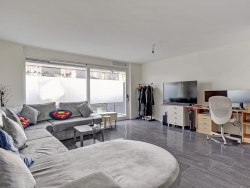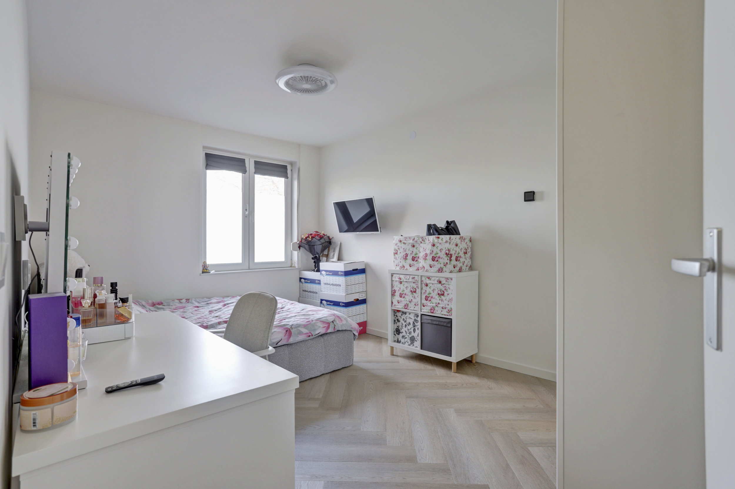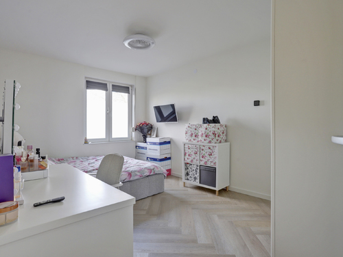Dit vertrek (ca. 14 m²) is gesitueerd aan de voorzijde van de woning en eveneens voorzien van een pvc visgraatvloer met vloerverwarming en een rolluik.