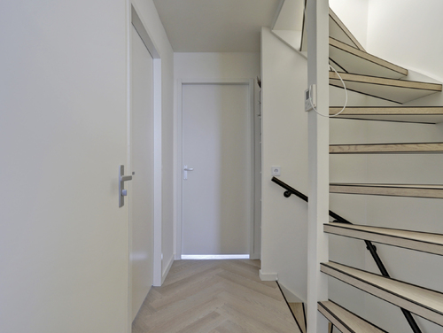 Op deze verdieping tref je netjes in een vaste kast de opstelling van de cv combiketel (Intergas/hre eco CW5, 2024) en warmtepomp en heb je toegang middels een vlizotrap tot de bergzolder over de gehele breedte van de woning.