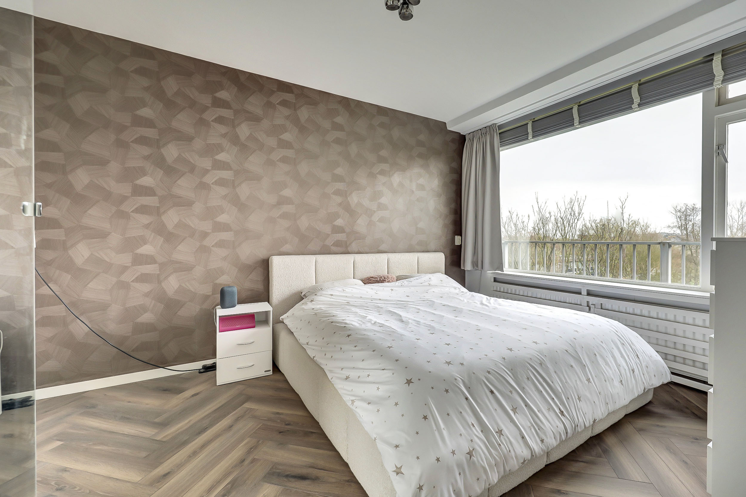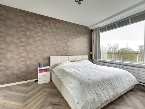 Vanuit de woonkamer loop je naar de ouderslaapkamer en de badkamer.