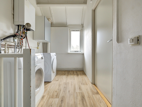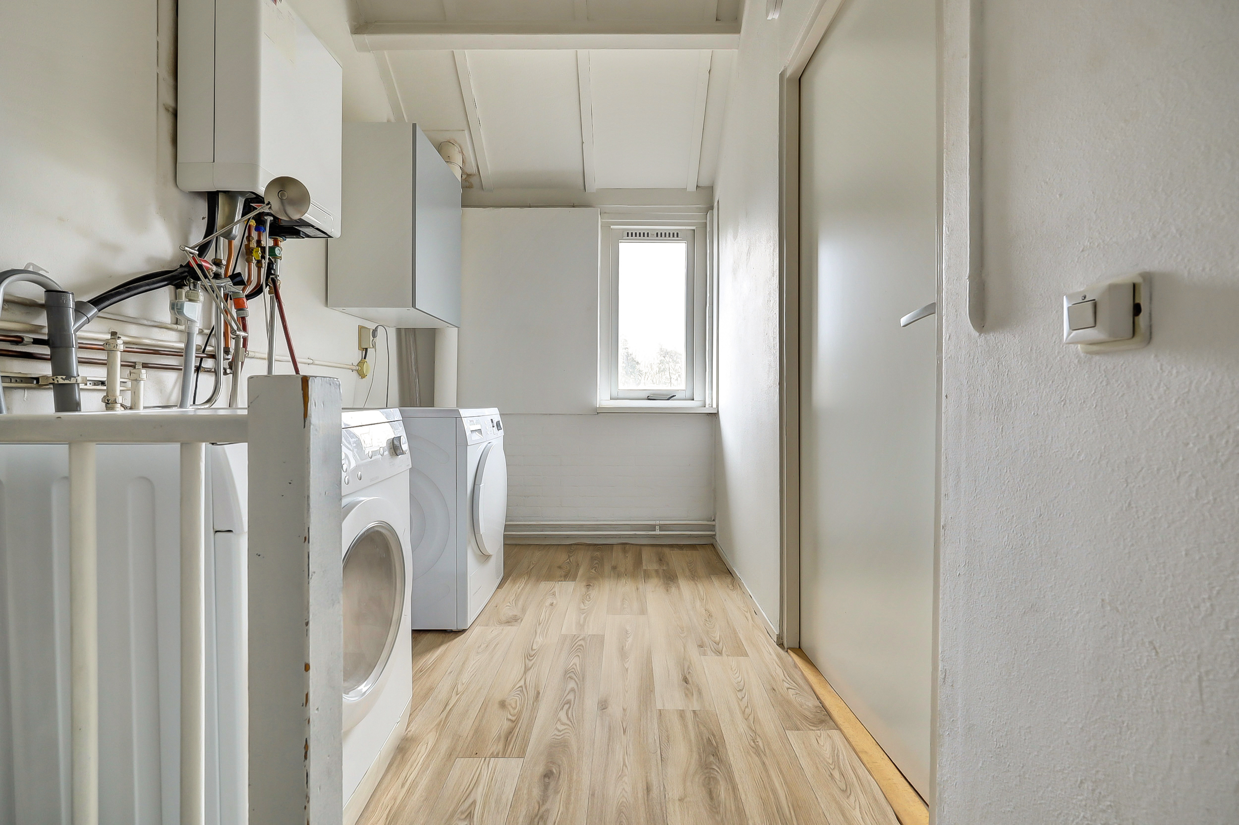 Via een vaste trap bereik je de overloop waar de wasmachine, droger, unit mechanische ventilatie en de cv ketel staan opgesteld (Intergas hre, bouwjaar 2018). Hier bevindt zich ook de 3e slaapkamer.