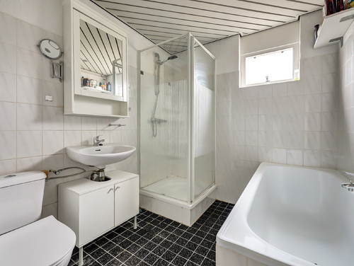 De badkamer (ca. 5 m²) dient te worden gemoderniseerd maar is thans voorzien van een ligbad, wastafel met meubel, douchecabine, ingebouwde verlichting, uitzetraam en een 2e toilet.